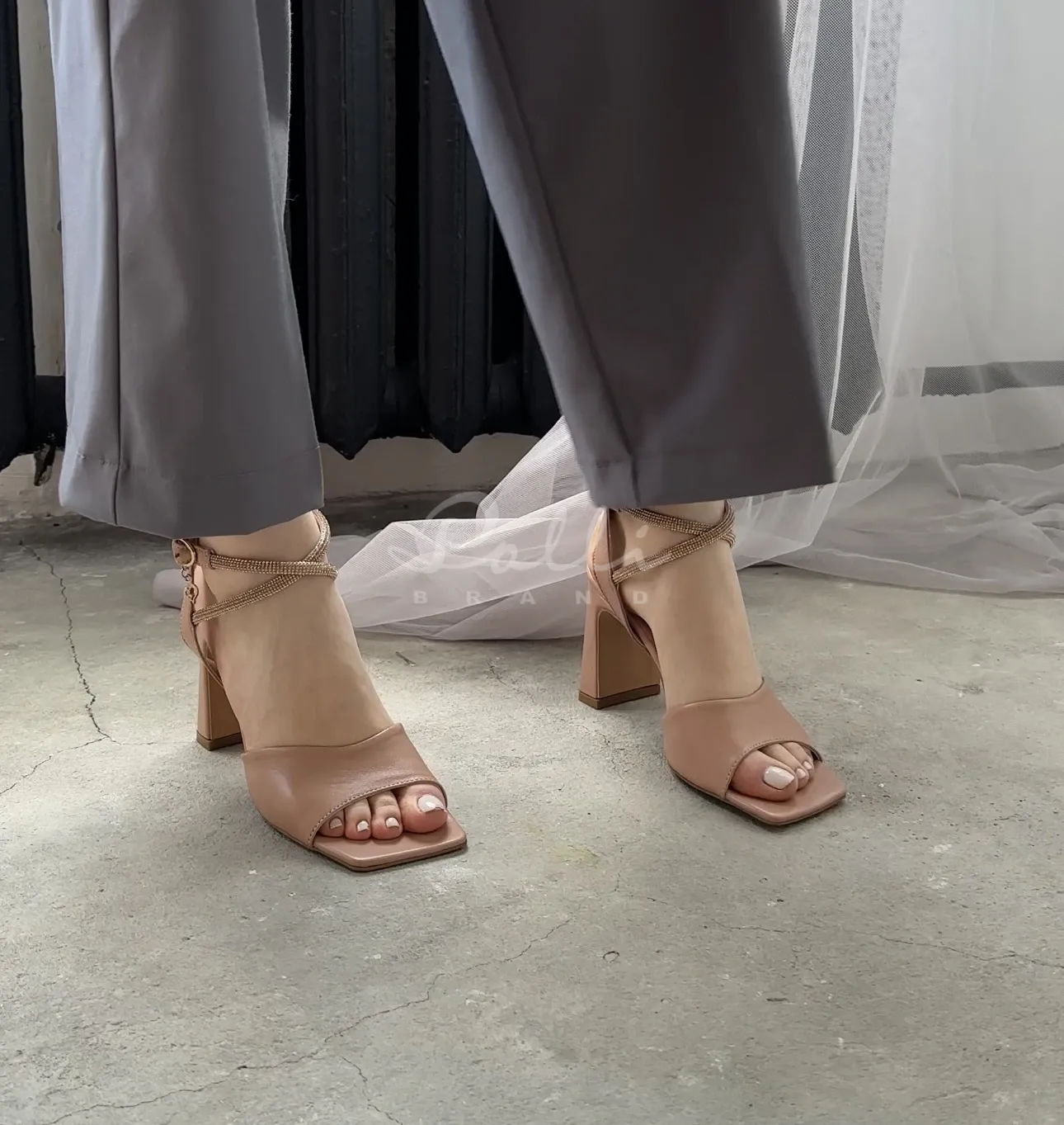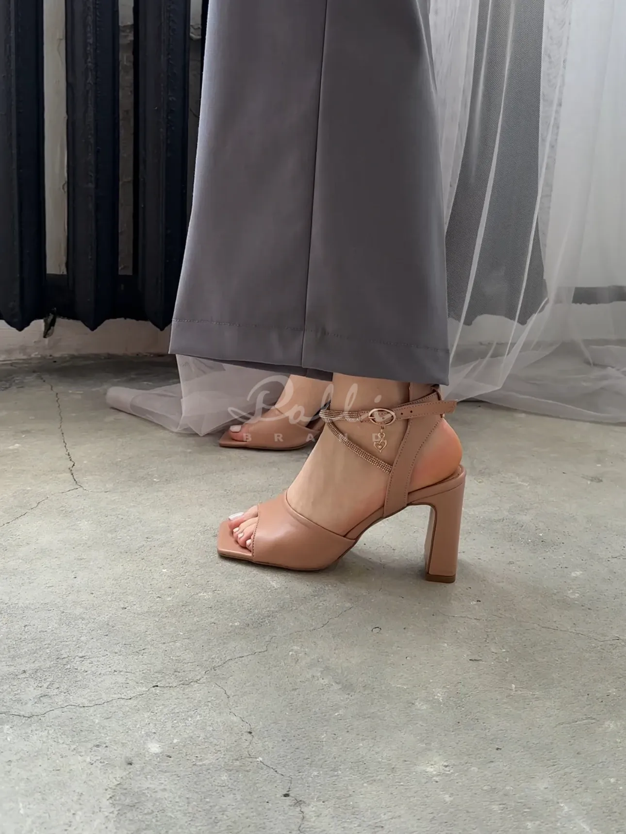 Унікальним елементом цієї моделі є закрита пятка, що додає босоніжкам сучасного вигляду та додаткової підтримки. Верхній ремінець, виконаний із блискітками, надає взуттю святкового вигляду, додаючи акцент блиску і розкоші навіть у повсякденних образах.